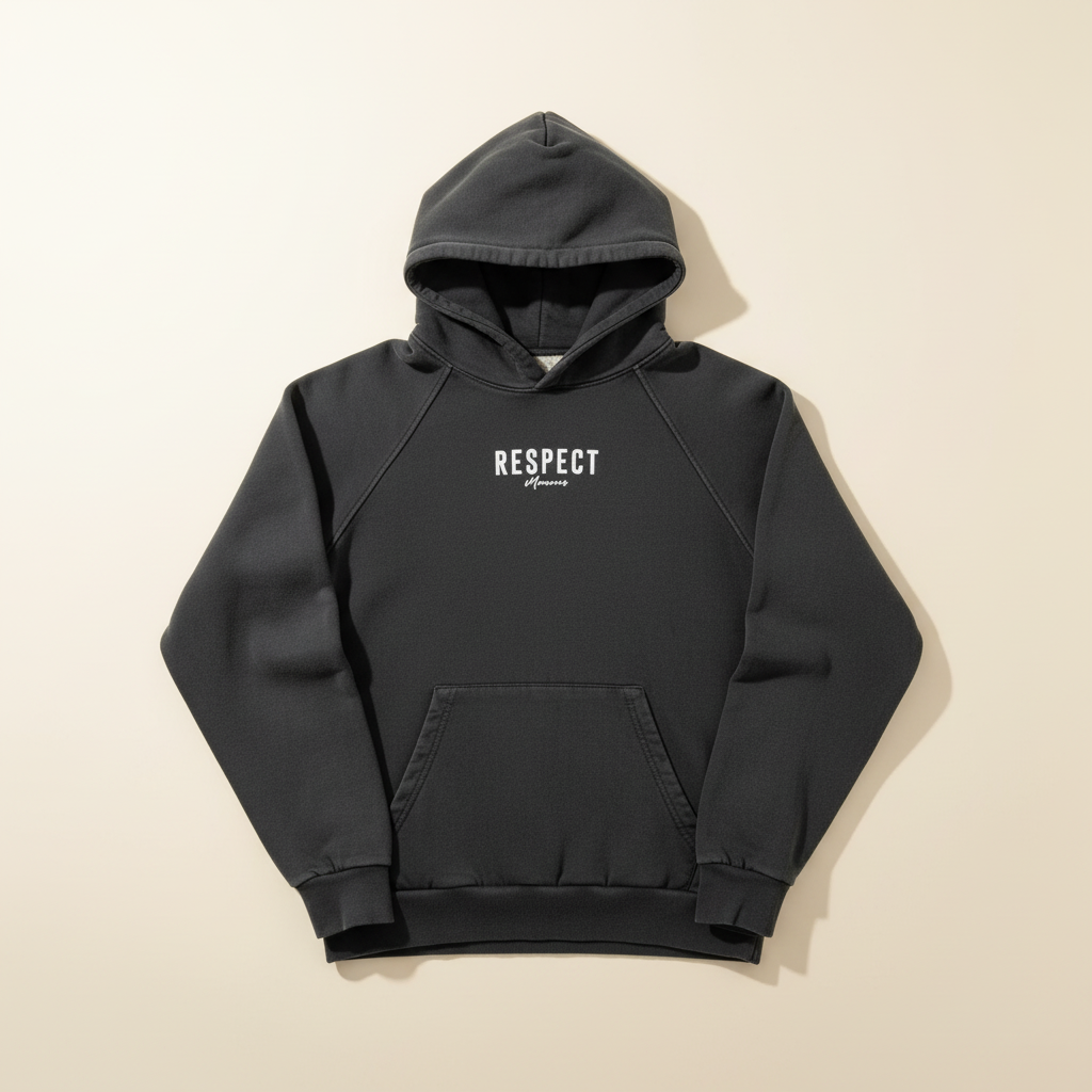 קפוצ׳ון שחור לגבר עם כיתוב “RESPECT Always” – גזרה רחבה